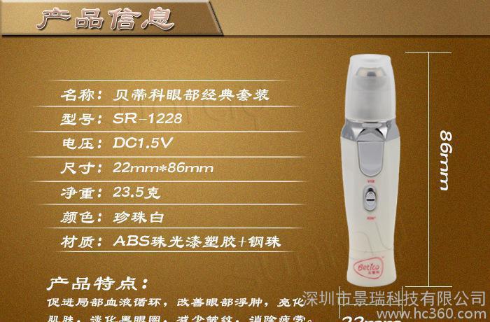 3) 通过微震按摩,加强眼部皮肤对保养品的吸收,同时,微震按摩能有效促进眼周微循环,加快皮肤新陈代谢,从而减少细纹,消除眼袋、水肿,淡化黑眼圈。