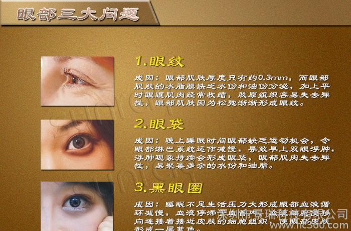 3) 负离子导入:紧致眼部肌肤,促进肌肤深层吸收眼霜精华,快速祛皱,祛除鱼尾纹,消除眼袋。