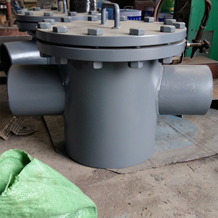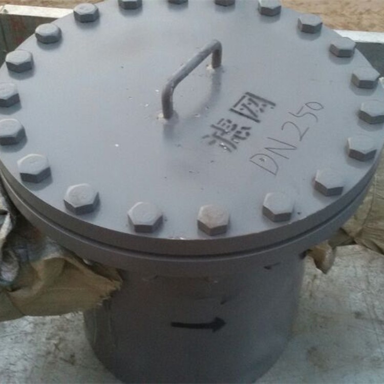 工作原理:当液体通过筒体进入滤篮后,固体杂质颗粒被阻挡在滤篮内,而洁净的流体通过滤篮、由过滤器出口排出。当需要清洗时,旋开主管底部螺塞,排净流体,拆卸法兰盖,清洗后重新装入即可。因此,使用维护极为方便。