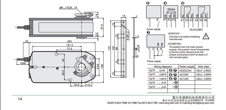 电源 AC/DC24V允差 ±10%输出力矩 8N.m运行时间 70s...150s复位时间 20s...50s运行功耗 6...8AV堵转功耗 3VA输出角度 90°(95°max)控制信号 2point on/off control适用轴径 φ 8...21mm or □ 6...15mm过载保护 Automatic防护等级 IP54使用环境 -10...+55° C 0...90%Rh**大噪音 Motor:50dB(A) Sping:65dB(A)净重 1.8...2.2kg
