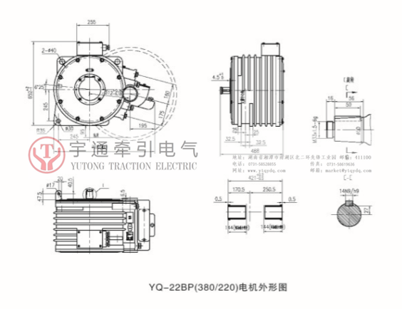 YQ-22BP(380/220)矿用一般型变频牵引电机 该电机用作CJY7-6.7.9及CJY10-6.7.9一级传动的交流变频架线式矿用电机车之驱动电动机。该电机具有结构简单、节能、免维护、运行平稳、效率高等优点。