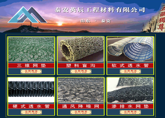 泰安英辰工程材料有限公司主要生产经营:三维土工网垫,高强度土工网,土工格室,塑料盲沟,软式透水管,通风降噪丝网,钢塑复合拉筋带,玻纤加筋带,复合土工膜,膨润土防水毯,塑料排水板,蓄排水板,土工格栅,土工布,土工膜,单向塑料土工格栅,双向塑料土工格栅,玻纤土工格栅,涤纶土工格栅,钢塑土工格栅,矿用土工格栅,多向土工格栅,凸结点土工格栅,BOP网,矿用经编土工格栅,围栏工程材料。产品主要应用于公路、铁路、煤矿、水利、电力、水土保持及环境绿化与基础建设领域,已被应用于高速公路、铁路等多项工程,受到工程界及广大用户的一 致好评,并与十几家科技设计单位、大专院校建立了密切的协作关系,系中国土工合成材料工程协会会员单位。英辰公司以开展学习实践科学发展观活动为契机 为新老朋友提供产品和完善的服务。