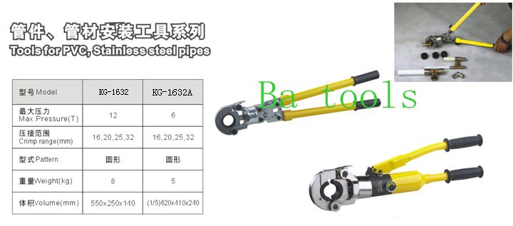 2.可调换模具,同一把工具上可压接从¢12-32mm不同规格的管件.