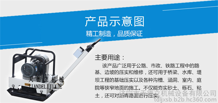 电动平板夯用于公路、市政、建筑、水利等领域修建路面、街道、楼房、水渠、桥梁时,对工程基础、沥青路面的夯实。
