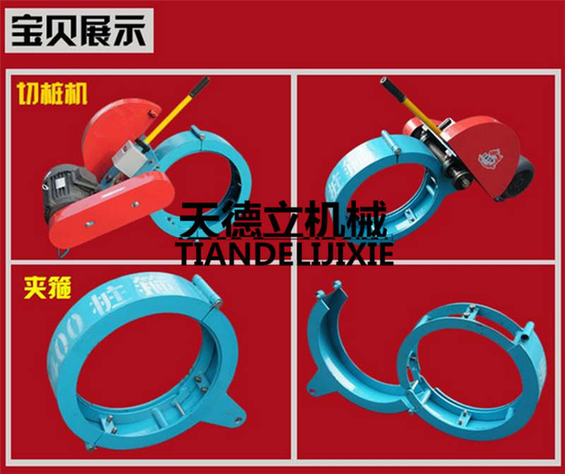 抱箍式混凝土切桩机主要用于管桩的切割,通过箍圈抱紧锁死,电机带动锯片绕箍圈对管桩进行周转切割,水冷却,有自动上水装置,轻巧简单,操作方面,根据不同型号的管桩通过更换箍圈进行切割。