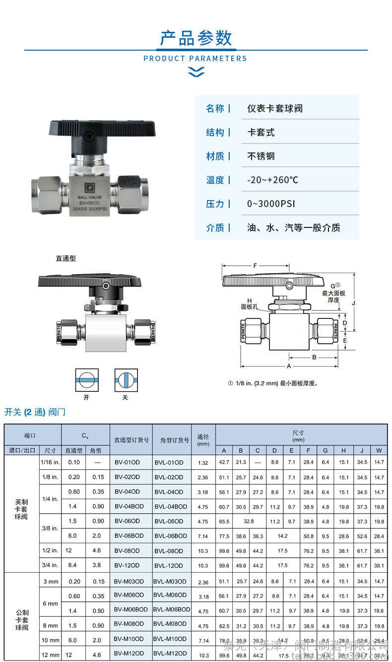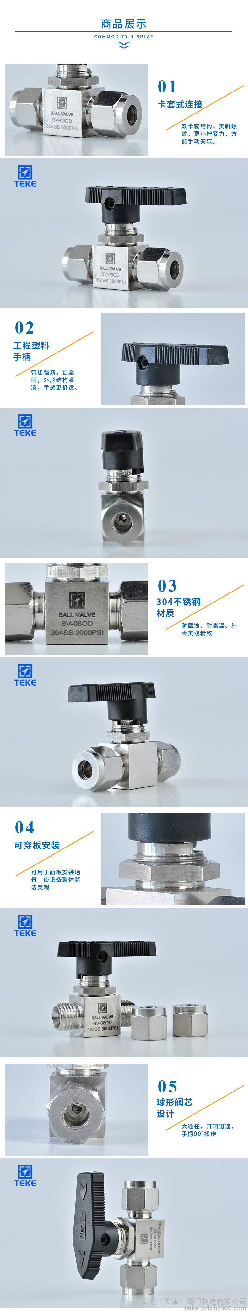 泰克BV 不锈钢卡套球阀,也叫卡套式球阀,双卡套球阀,单卡套球阀,卡套异径球阀,卡环式球阀,卡圈式球阀,QG.Y1卡套球阀,卡套变径球阀。产品广泛应用于水处理设备、化工设备、石化设备、石油设备、造纸设备、采矿设备、电力设备配套、液化气设备、食品设备、制药设备、给排水设备、机械设备阀门、电子工业阀门,城建阀门、工业管道阀门、通用零部件、工业设备、消防暖通、过滤设备、环保设备等领域。