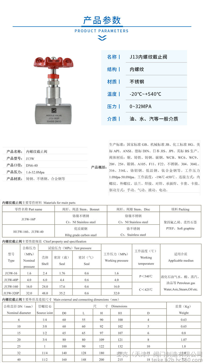 | 连接形式 | 内螺纹 |