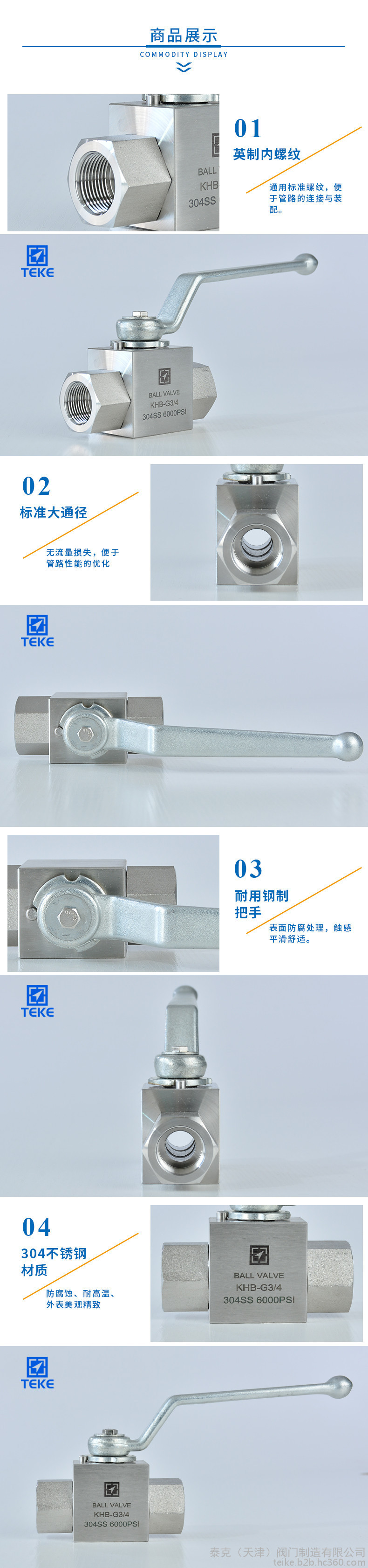 HKB-G 不锈钢内螺纹高压球阀的主要特点是本身结构紧凑,密封可靠,结构简单,维修方便,密封面与球面常在闭合状态,不易被介质冲蚀,易于操作和维修,适用于水、溶剂、酸和天然气等一般工作介质,而且还适用于工作条件恶劣的介质,如氧气、过氧化氢、甲烷和乙烯等,在各行业得到广泛的应用。球阀阀体可以是整体的,也可以是组合式的。