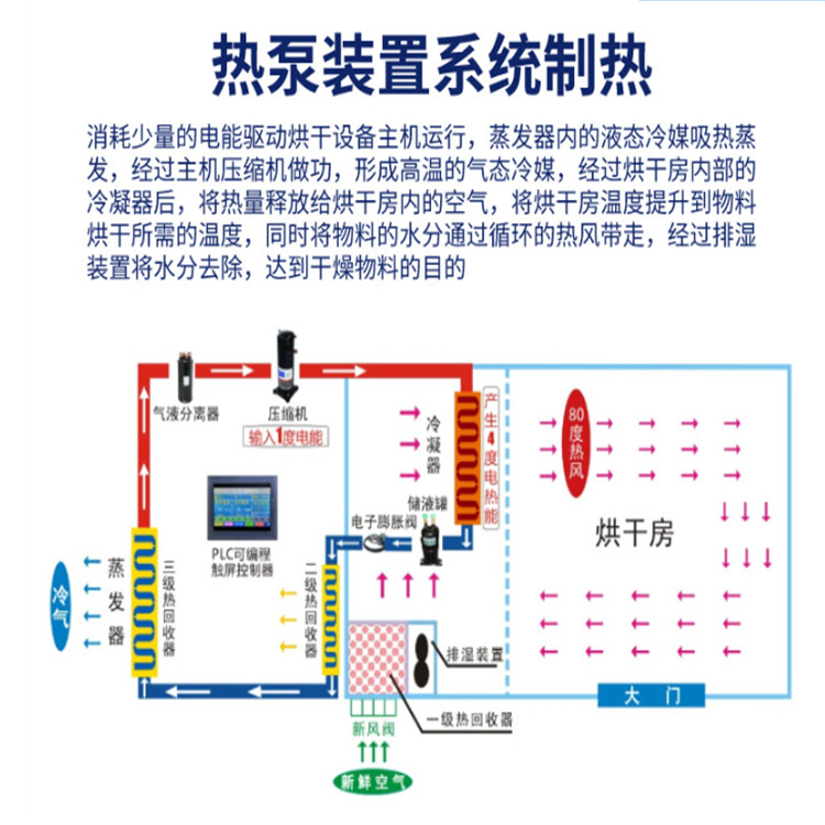 工作服烘干机是一种省电的干燥设备,采用少量的电吸收空气中热量经过压缩制热出大量热能提升烘房的温度,非常的节能,一度电顶4度,且设备烘干自动化完成,设置好烘干要求启动烘干,干燥完成后自动停止,非常的方便省事,触摸屏控制操作非常简单,一体式的主机设计安装简单方便,可烘干各类75℃以下的物品。