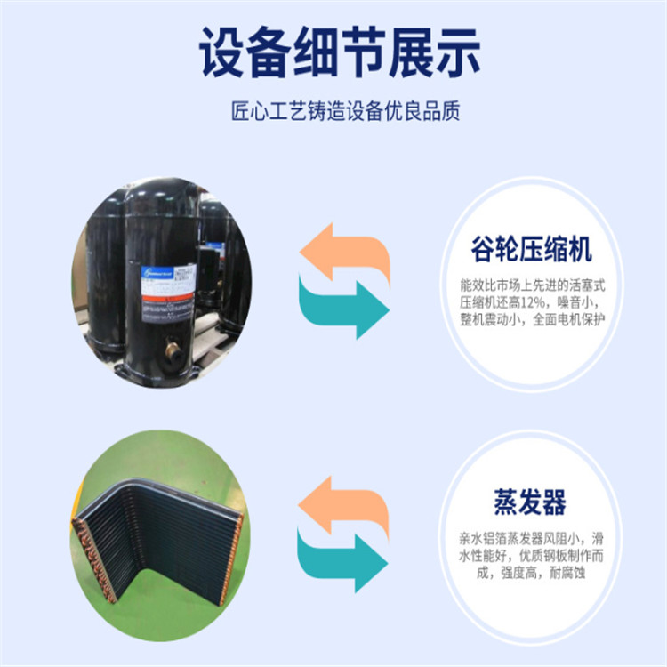 工作服烘干机主机技术参数:主机可实现制热、制冷自动切换功能。制热高温可达75℃,制冷低温度可达10℃系统截流装置采用进口电子膨胀阀进行制冷剂的截流,可根据不同的环境温度、烘房温度等自动调节制冷剂的流量,可使机组在不同的使用工况下,实现较高的能效。