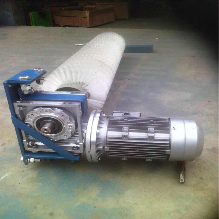 和皮带旋转,再经过传动臂带动毛刷辊旋转,达到清扫皮带之用。