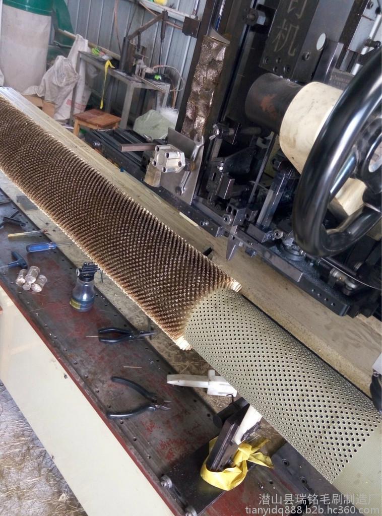 钢丝刷特别是钢丝刷辊通常应用于钢材或铝业表面处理厂,由一系列 的不锈钢丝刷辊安装在全自动高速运转的毛刷抛光机(刷光机)上。钢丝刷辊以与轧件运动相反的方向在板带的上下表面高速旋转刷去氧化铁皮。刷掉的氧化铁皮采用封闭循环冷却水冲洗系统冲掉。一般卷线材的使用厚度为1.09-6.35mm,钢丝刷子的更新周期为每生产2万t薄板或4万t钢卷更新一次。