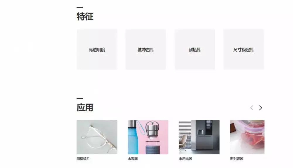 二、耐沸水性优良,经100 ℃,240小时处理后,拉伸强度和弯曲强度几不变,拉伸强度为同一条件处理的PC的3倍以上。