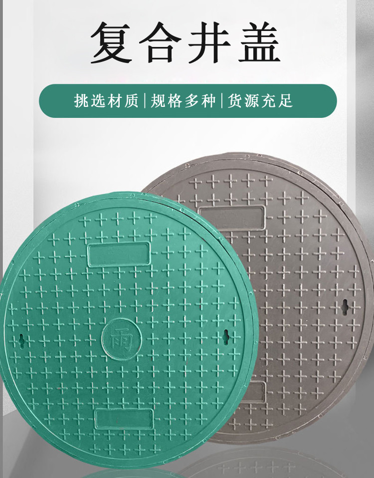 材料等组成。玻璃钢井盖是为解决钢、铁井盖易锈蚀和盗失、太笨重、易脆裂等缺陷,提高其