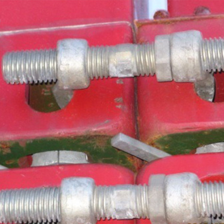 桥锁的使用方法较简单,只需将桥锁的两个端架(锁钩头)分别插入相邻两集装箱的角件孔内,再旋转调节螺母,即可把集装箱连接拉紧。