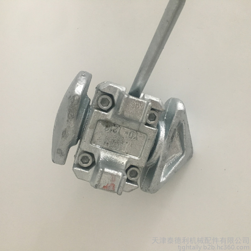 产品说明 扭锁有左旋锁和右旋锁之分,即当操作手柄位于实线位置时,扭锁处于非锁紧状态,当操作手柄从右向左旋转至极限位置时,扭锁达锁紧状态。为此,使用时,应首先将操作手柄置于非锁紧状态并将其置放到下层集装箱顶部的顶部的角件孔或突出式底座内,待上层集装箱堆放妥后,转动操作手柄,即可将箱与箱与底座连接起来。卸箱时应首先用扭锁操作杆将操作手柄转至扭锁非锁紧位置方可卸箱。
