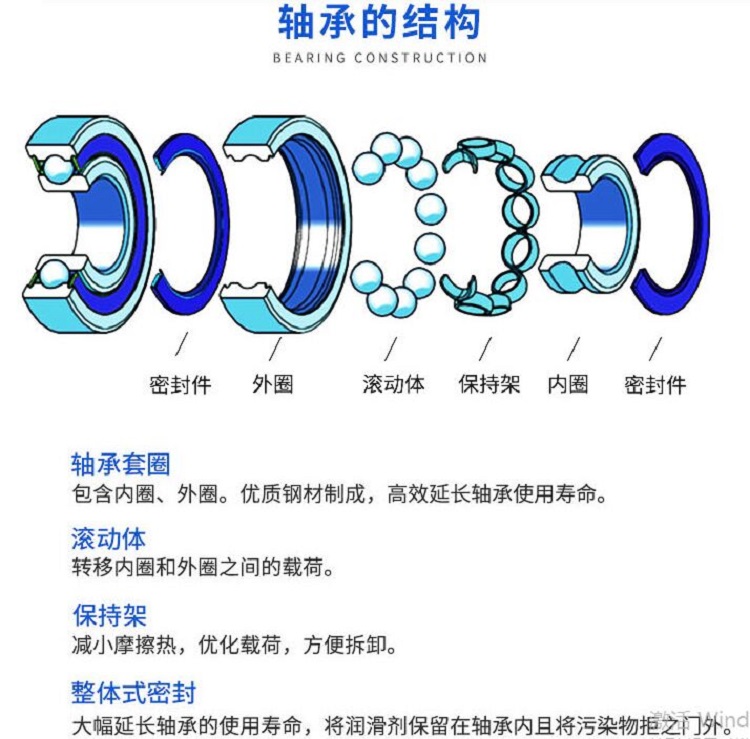 深沟球轴承是滚动轴承中普通的一种类型,基本型的深沟球轴承由一个外圈,一个内圈、一组钢球和一组保持架构成。 深沟球轴承类型有单列和双列两种,深沟球结构还分密封和开式两种结构,开式是指轴承不带密封结构,密封型深沟球分为防尘密封和防油密封。防尘密封盖材料为钢板冲压,只起到简单的防止灰尘进入轴承滚道。防油型为接触式油封,能有效的阻止轴承内的润滑脂外溢,深沟球轴承主要用于承受径向载荷,但也常用来承受径向和轴向的复 合载荷。特别是机械设备转速很高,不宜采用推力轴承时,该轴承可以用来承受双向纯轴向载荷,且工作期间无需保养,是价格较低、用途广的一种 轴承。深沟球轴承型号有:深沟球轴承(60000型);单列深沟球轴承类型代号为6,双列深沟球轴承代号根据各国品牌不同分为3和4和5。其结构简单,使用方便,生产普遍,应用广的一类轴承。