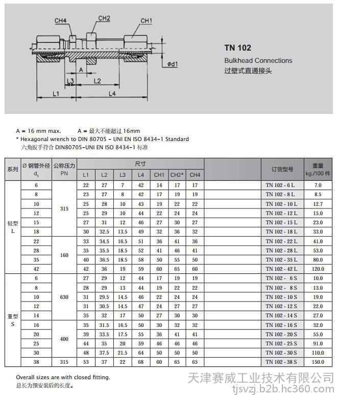 名称:TN 102 过壁式直通接头