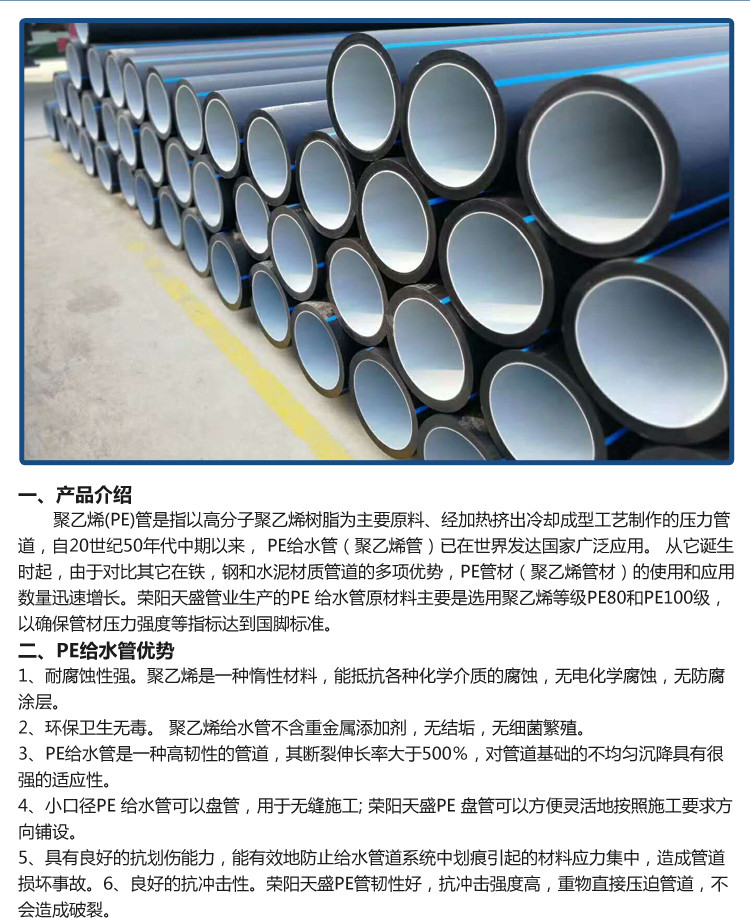 聚乙烯给水管 PE管批发 饮用水pe管件 pe国标管