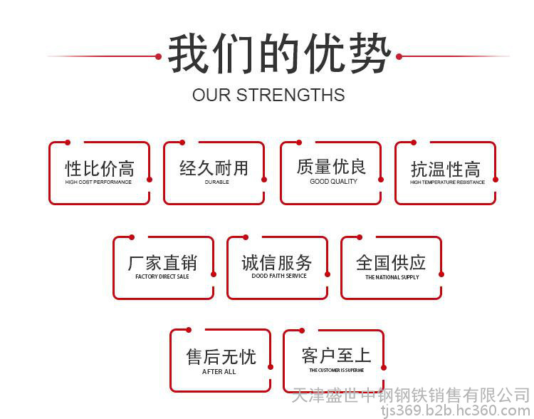 天津盛世中钢钢铁销售有限公司是集生产销售于一体的大型企业,公司主营焊管,镀锌管,螺旋管,方矩管,镀锌方矩管,镀锌板,镀锌加工业务。焊管镀锌管规格15-800mm,壁厚0.3-30mm,螺旋管219-2050mm壁厚4-25mm,方管镀锌方管10*10-1000,壁厚0.3-30mm,镀锌板0.3-30mm,镀锌业务锌层可达到150微米1200g,可根据客户需求定做长短尺,Q235/Q345BB及特殊材质,握弯,打眼喷漆等深加工业务。公司拥有3条镀锌线,年生产能力达到10万吨;7条焊管生产线,年生产能力达到40万吨。公司常年经营成冶钢集团、包头钢厂、宝钢集团、鞍钢集团、天津大无缝、河钢、首钢、唐钢、燕钢所生产的钢板。 公司“以质量求生存,以信誉求发展,以市场为先导”是我们公司的经营理念。全体干职员工艰苦创业,努力拼搏,坚持“以客户为中心”的原则,始终如一的严格管理,降低成本,让利于客户。我们热情诚邀海内外的客户能够参观莅临我厂洽谈指导,与您并肩共创美好明天 !