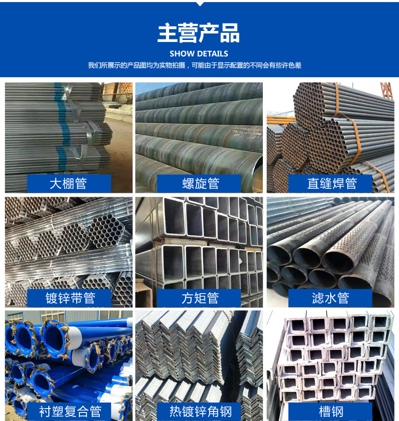 大棚管又名镀锌大棚管,镀锌管大棚分热镀锌和电镀锌两种,热镀锌镀锌层厚,具有镀层均匀,附着力强,使用寿命长等优点。电镀锌成本低,表面不是很光滑,其本身的耐腐蚀性比热镀锌管相差很多。天津大棚钢管厂是专业从事大棚骨架、连栋大棚、大棚配件、温室资材生产、温室设计、骨架加工、销售一体的企业。公司位于天津大邱庄 厂区占地面积20亩,标准厂房6000平方米,年产量达到200万平方米温室骨架,年销售钢材量3万多吨,公司一直与多家上市公司合作,为光伏农业提供约千亩骨架及配件。长期战略合作商如华盛绿能农业科技有限公司。现代化的管理模式、优越的企业文化让我们已经成为行业中的佼佼者。公司引进的ERP系统,运作已经日趋成熟,大大提高了工作效率。研发团队自主研发的配件生产磨具已拥有多项产品生产权。 目前公司拥有卡槽成型机6台,日产量达到10万米;三台160吨6米折边机,可以应客户不同要求进行定制天沟等大棚构建;公司投入500万改造各种数控机床,所有温室配件均采用全自动化设备,提高了产品产能以及质量。公司坚持以先进的技术为指导,不断创新,生产**、实用的专业温室配件。温室主体钢架结构采用热镀锌工艺,防锈防潮,经久耐用。