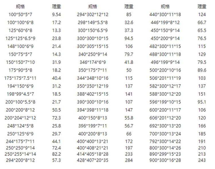 | 规格 | 100*100*6*8,500*200*10*16,450*200*9*14,446*199*8*12 |