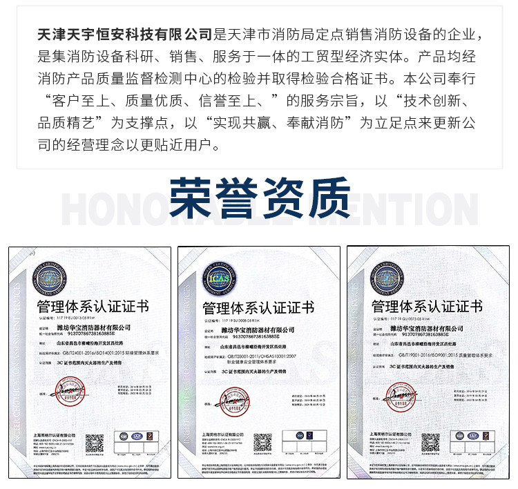 天津天宇恒安科技有限公司是天津市消防局定点销售消防设备的企业
