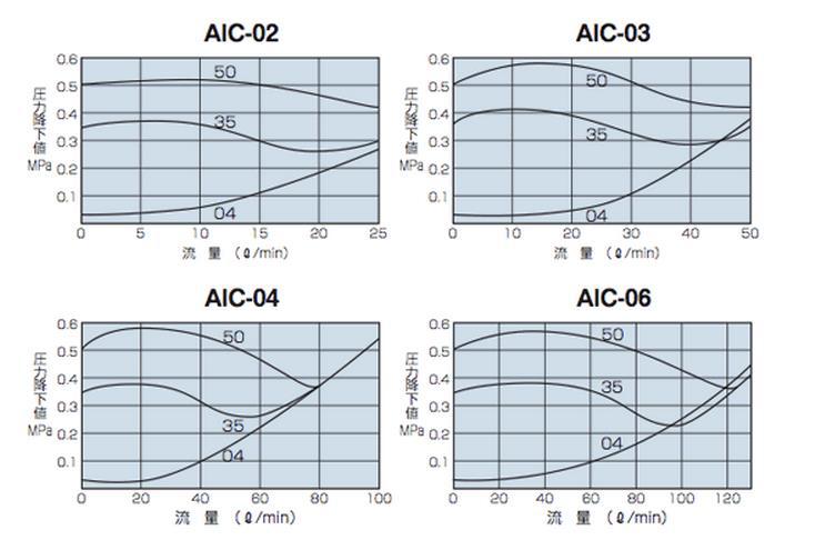 测定条件/作动油:ISO VG32、油温:45 ± 5° AIC-04 50