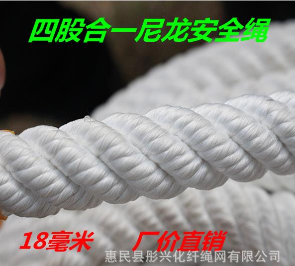 逃生消防救援拖车高空作业编织安全绳 18mm四股合一尼龙安全绳