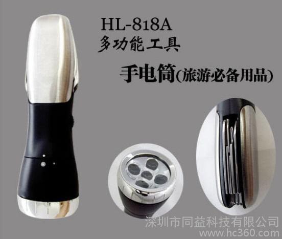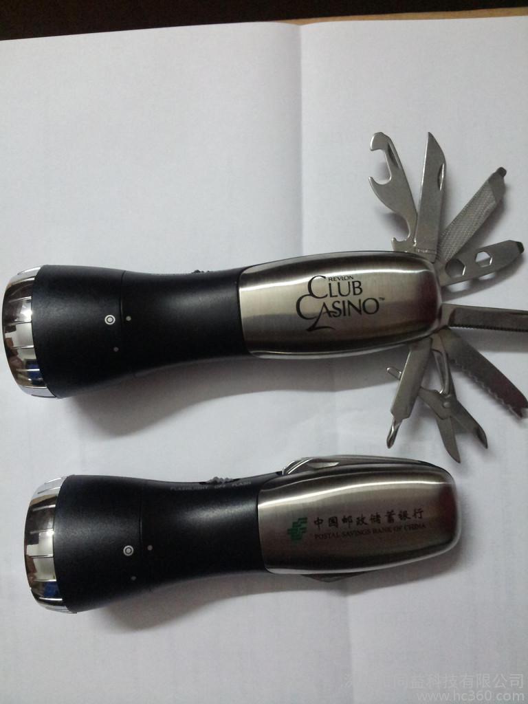 ?主要功能: ?1.手电筒.瑞士**,剪刀,螺丝刀,钳子,切割刀等?2.4个LED白灯,1个红灯,功率是0.4瓦?3. 常规颜色:黑色?4. 产品单个净重重量:?5.产品主要材质:ABS+不锈钢?五金刀具是2CR13不锈钢