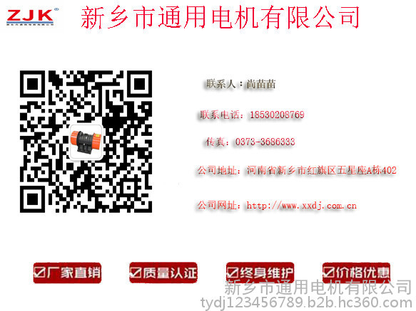 新乡市通用电机有限公司生产的YZS振动电机价格低,型号全,质量好, 新乡市通用电机有限公司已通过ISO9001:2000国际质量体系认证,产品多次与国内重点工程配套,并远销欧美。公司拥有先进的机械加工设备,配备真空绝缘处理设备和电机专用装配设备,使产品质量得到可靠保证