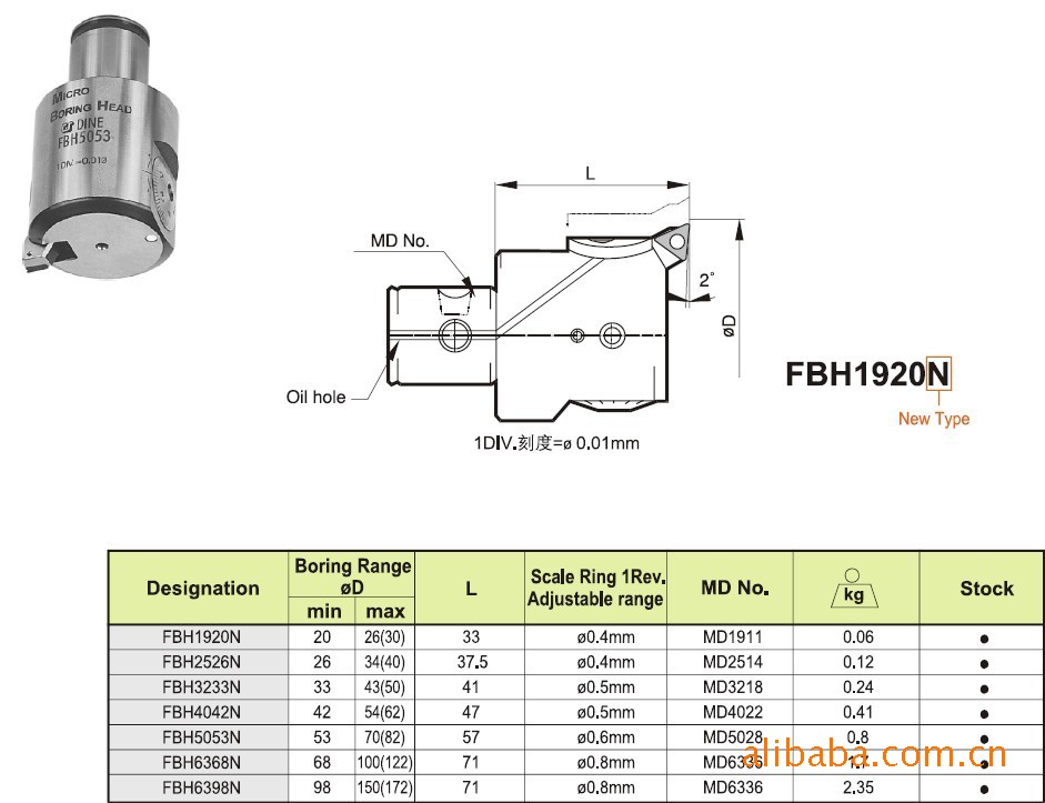 特点:可进行**调节,每调一个刻度直径变化 直径0.01mm 紧凑设计与加强功能,尺寸精度可达H6,H7等级