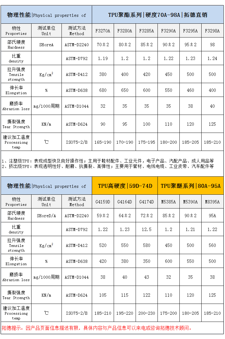 拓德全程提供详细TPU、TPE、TPEE、TPEV、PA12等弹性材料产品资料。
