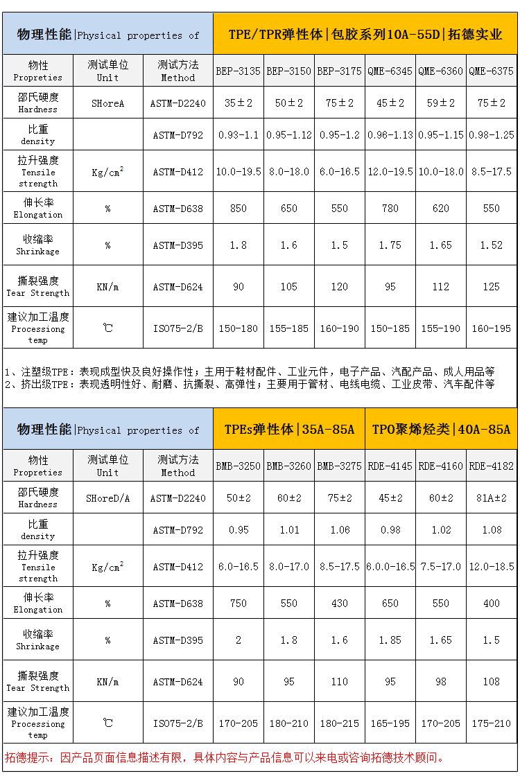 上海拓德实业有限公司为工厂直销,TPE,TPR材料具有加工性能优越,无须硫化等特点.
