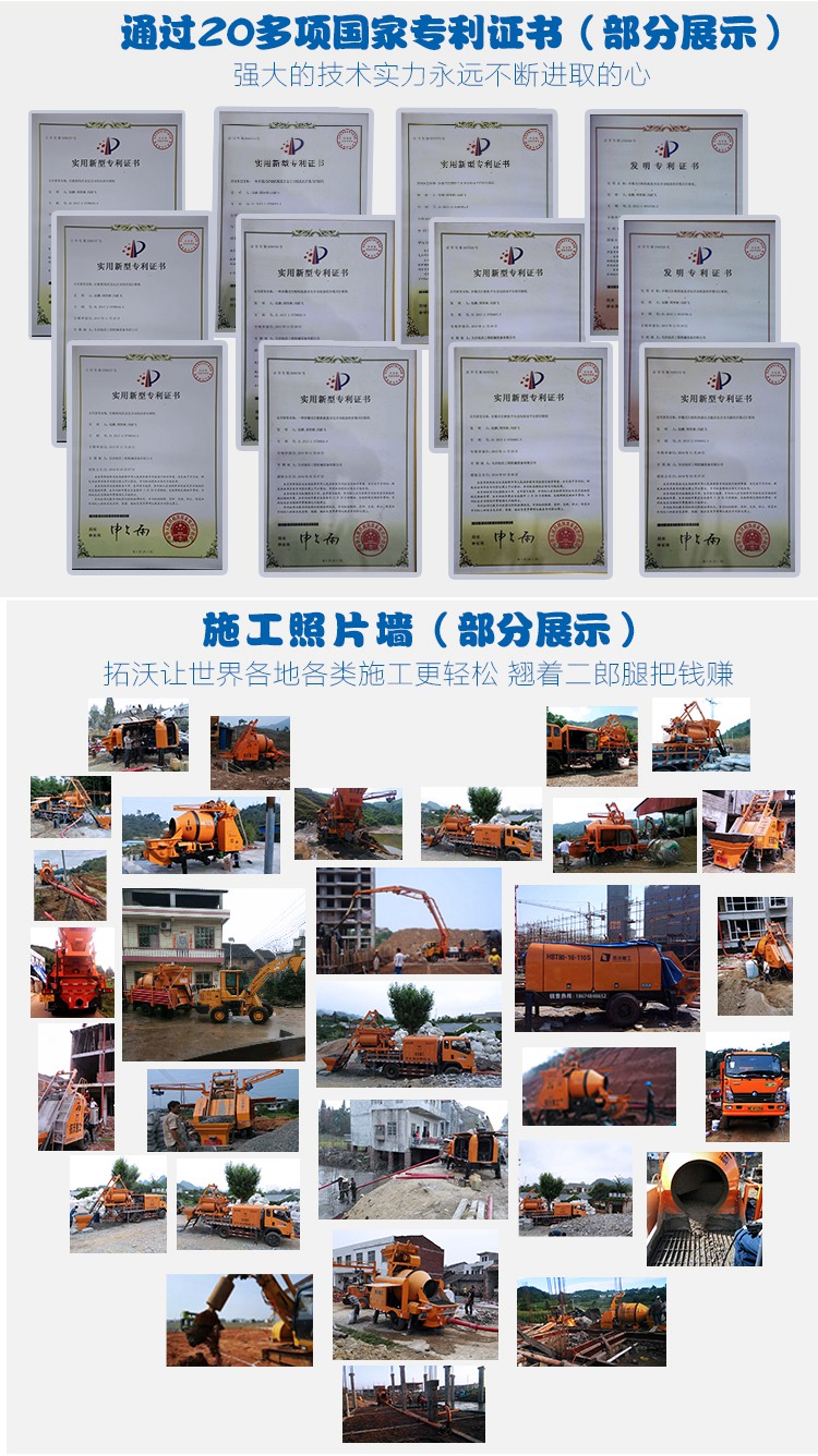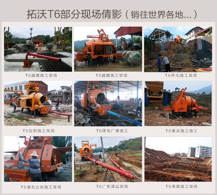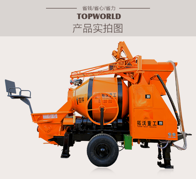 详细报价请咨询400-998-0112 拓沃重工混凝土搅拌拖泵搅拌机泵送输送一体机搅拌地泵输送泵说明包含产品参数、产品说明、产品的施工视频。 拓沃重工-混凝土搅拌泵送专家,专业生产滚筒拖泵一体机。我们有自己的土地,自己的工厂,自己的技术研发能力,生产能力;有严格的生产流程,生产标准,装配流程,调试标准;层层把关,确保设备无故障,少故障,并且有专业的售后服务团队,各地区有专业的售后部门.买拓沃重工滚筒拖泵一体机有保障!