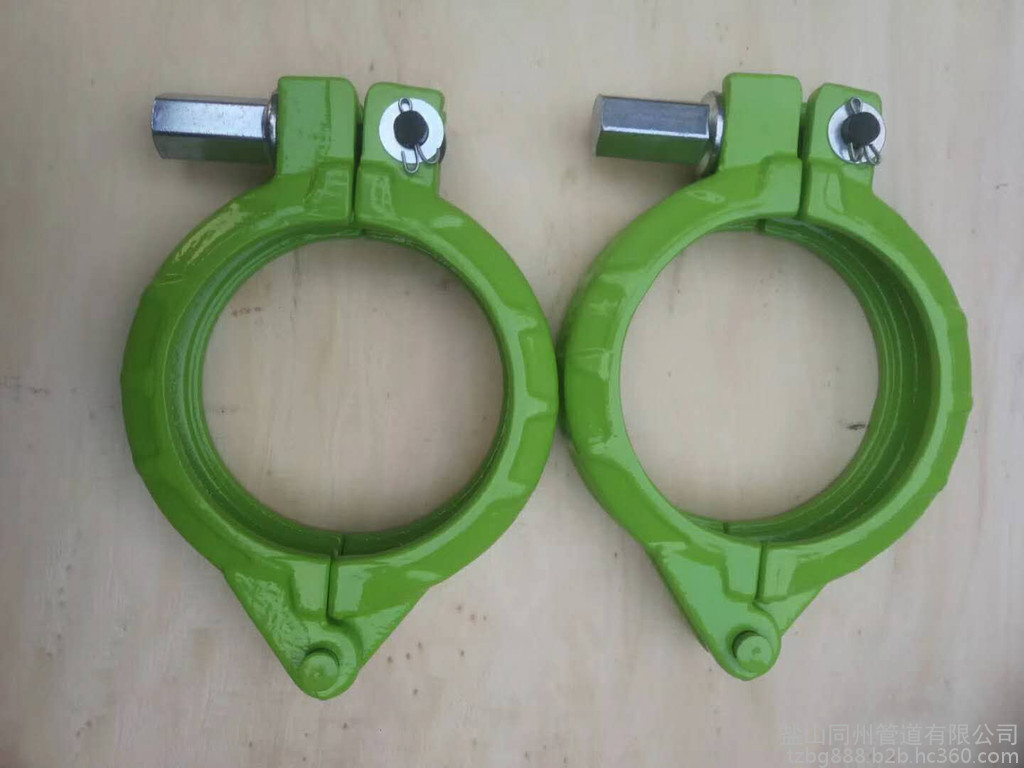 我公司开发的(卡箍),采用**钢材(40cr),经过1200°高温锻打而成。具有减轻臂架重量,使用寿命更长等优势,耐高压,耐磨,镀锌防锈等属性。(具体规格可根据你的需求)混凝土输送泵管道耦合规格:4"-6",加重,高压,公母系列,德国大象,schwing系列,Sany,Zoomlion等材质:40Cr(可以提供杭钢质保书)技术:1200度高温锻打,应用:混凝土泵车卡箍,国内外牌子尺寸,可定做。