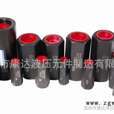 单向阀有直通式和直角式两种。直通式单向阀用螺纹连接安装在管路上。直角式单向阀有螺纹连接、板式连接和法兰连接三种形式。液控单向阀也称闭锁阀或保压阀,它与单向阀相同,用以防止油液反向流动。但在液压回路中需要油流反向流动时又可利用控制油压,打开单向阀,使油流在两个方向都可流动。液控单向阀采用锥形阀芯,因此密封性能好。在要求封闭油路时,可用此阀作为油路的单向锁紧而起保压作用。液控单向阀控制油的泄漏方式有内泄式和外泄式二种。在油流反向出口无背压的油路中可用内泄式;否则需用外泄式,以降低控制油压力。