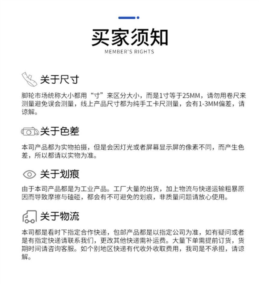 | 适用范围 | 购物车、平板车、货架、家具沙发、助行车、各种推车 |