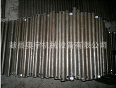钢管采用托辊专用高频焊管,管内做去刺处理,圆度控制在特殊的公差范 围之内。轴是按标准公差加工的冷拉钢制造。轴承座采用进口冷扎钢板经多次工艺冲压而成。托辊壳和轴承座被自动焊接机械手焊接在一起,形成一个具有很高强度的整体构造。