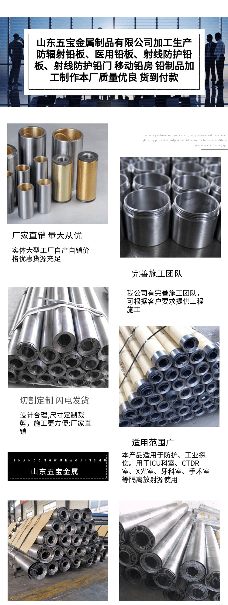 山东五宝金属制品有限公司加工生产防辐射铅板、医用铅板、射线防护铅板、射线防护铅门 移动铅房 铅制品加工制作本厂质量保证 货到付款