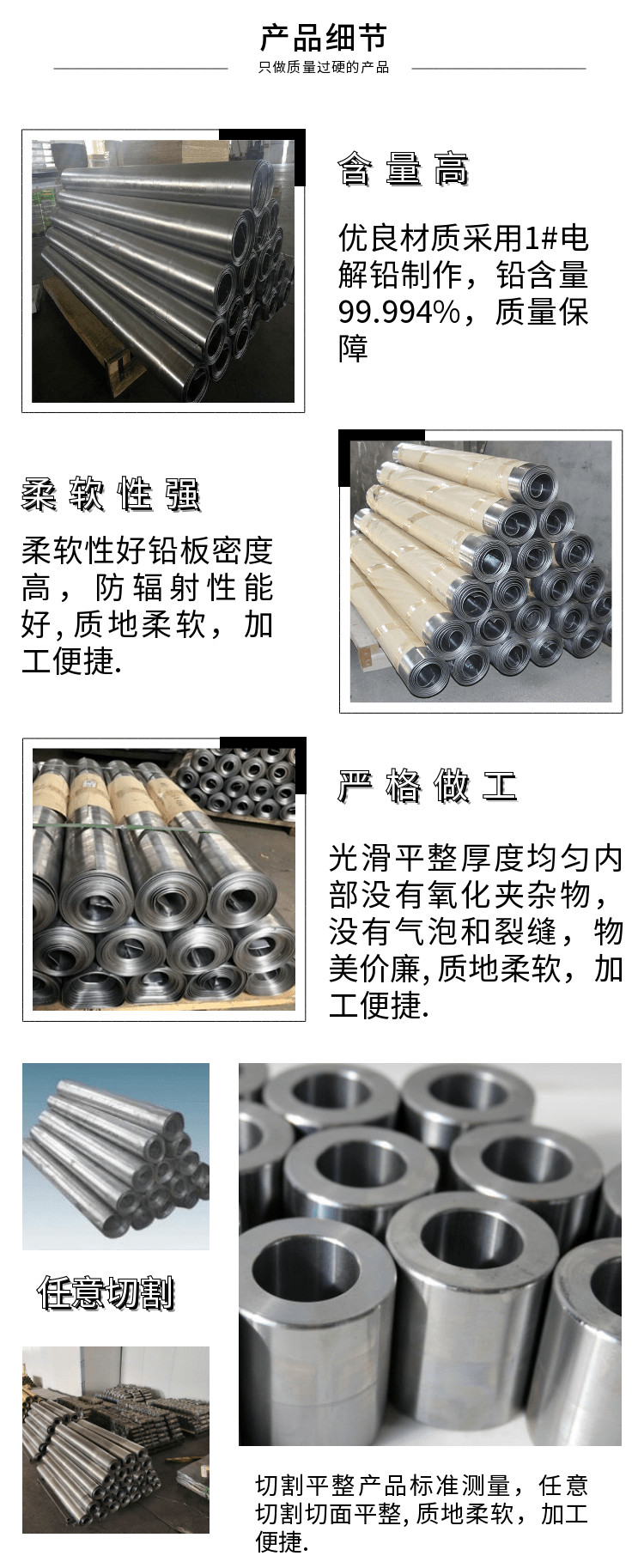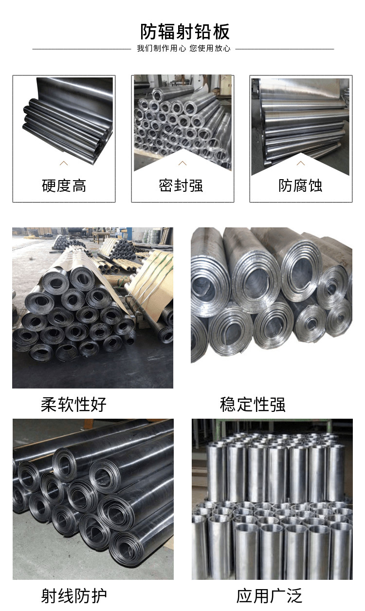 主营产品有防辐射铅板,射线防护铅门、铅板、铅皮、探伤防护门、铅玻璃、铅防护服、铅眼镜**钡等射线防护(也称铅皮、铅片、)、 型号:(单位:mm) 厚度0.1mm—160 **大宽度:1600mm **大长度可加工至13米长,特殊需要可协商。 本厂可根据客户要求