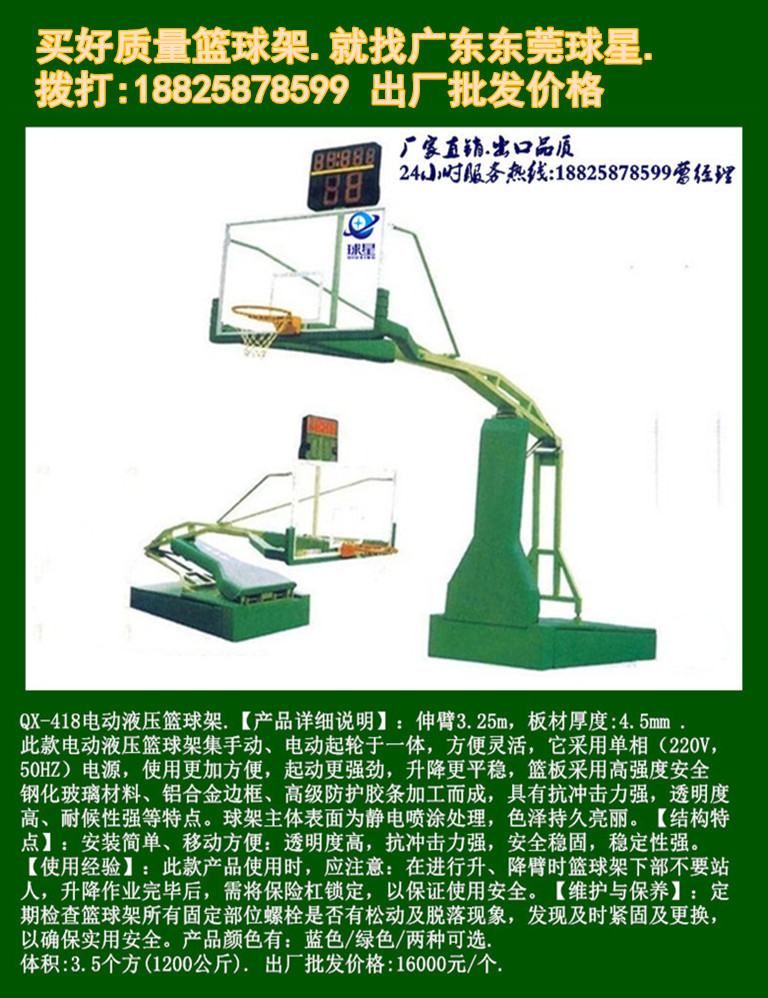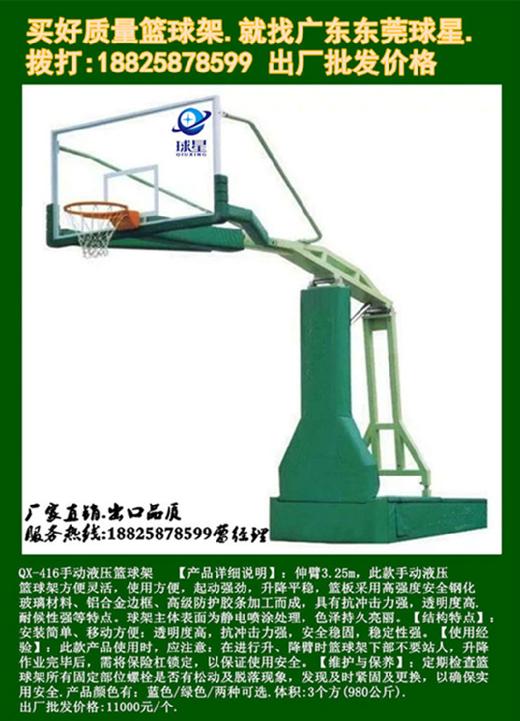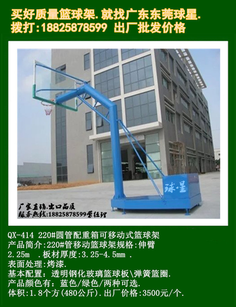 篮球架系列产品颜色为:绿色、蓝色、可选.可根据用户需求改变颜色,产品在没有特别说明的前提下默认为根据库存随机从绿、蓝两种颜色中随机抽取发货。