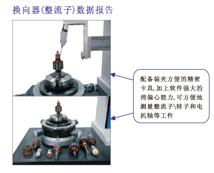 亦可测量电机换向器的圆度、跳动量、单片跳动、邻片间跳动、片间断差等参数。