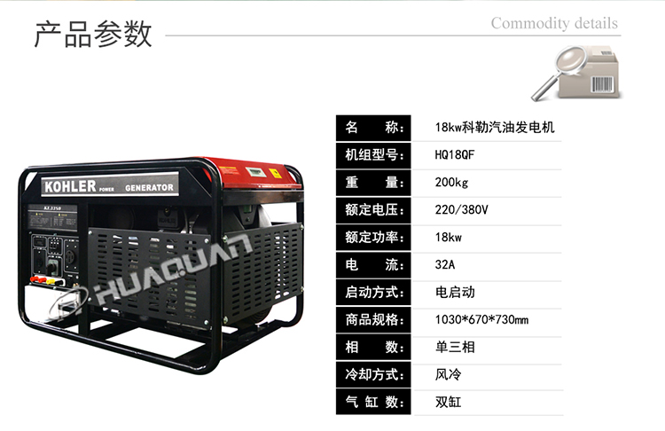 华全进口发电机 小型18kw风冷双缸汽油发电机组 科勒汽油机18千瓦380v