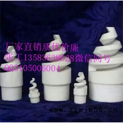 碳化硅涡旋喷嘴产品特点:喷流方式为空心锥形,喷涂区域成环形。喷嘴整体为碳化硅材料制成。适用于非常恶劣的工作环境,喷嘴能在大范围的流率和压力下产生分布均匀、液滴大小为中等到偏大的喷雾。大流量碳化硅喷嘴具有大而流畅的流通道,确保无阻塞现象发生。产品耐热、抗弯、耐腐蚀性能非常强。广泛应用于废气洗涤、烟气脱硫系统、气体冷却等。