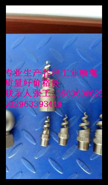 螺旋喷嘴可以在大多数管道系统上安装或更新。可提供的喷嘴有npt或bspt(外)螺纹型。通常1/4英寸一4英寸的喷嘴可分别用黄铜、316不锈钢铸件、pvdf、碳化硅、teflon聚四氟乙烯或聚氯乙烯材料制造的。如需应用于特殊领域,也可采用其它材料制造。联系人张文娟手机135863638628微信同号联系人张文娟手机135863638628微信同号