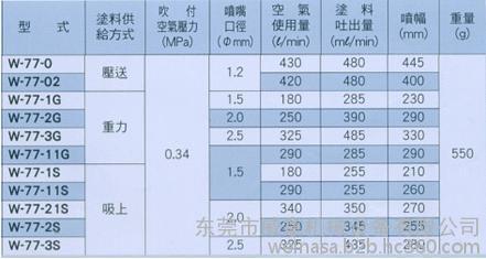 日本岩田W-77手动喷枪:适用于汽车修补喷涂、木工、家具、五金、塑料等喷涂用手动型喷涂。 乳胶漆可用2.5或3.0的。