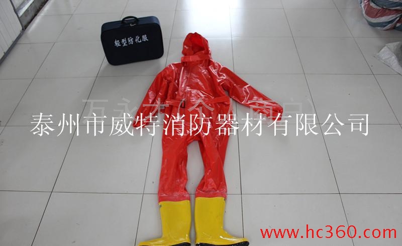 【现货直销】防酸.防碱.轻型防化服.劳保工矿器材,重型防化防护服 本公司生产的消防轻型防化服 符合GA770--2008标准要: 防化服采用经阻燃增粘处理的锦丝绸布,双面涂覆阻燃防化面胶,制成遇火只产生碳化,不溶滴,又能保持良好强度的胶布作为主材,经缝制- 热风贴条工艺制成服装主体和手套,并配以阻燃.防化.耐电圧.抗穿刺靴构成整套服装. 用途.主要适用于消防员在有危捡性化学物品和腐蚀性物质的火场和事故现场进行灭火和抢险救援时,为保护自身免遭化学危险品或腐蚀性物质的侵害而穿着的防护服装.并具备防酸.防碱.抗汽油耐热老化.耐寒靴底耐穿刺绝缘等性能. 颜色.红色.黃色两种 重量;整套服装小于5公斤 泰州市威特消防器材有限公司,专业生产消防个人防护装备和特勤器材,江苏省高新技术企业,高速成长型企业,重合同、守信用企业,。企业技术力量雄厚,生产 设备精良,制造工艺先进,检测设备齐全,通过了ISO9001质量体系认证,我们以**好的质量**低的价格赢得广大顾客的青睐.欢迎来我厂采购或做代理. 你我携手共同发展!!!