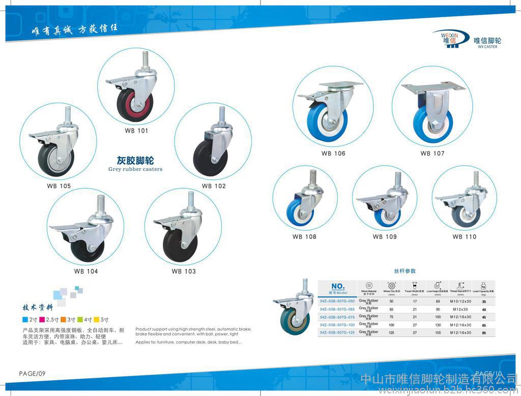 本公司供应脚轮唯信2.5寸3寸灰胶轮唯信 2.5寸3寸灰胶轮 是 PVC 定向脚轮 家具脚轮,质量保证,欢迎咨询洽谈。