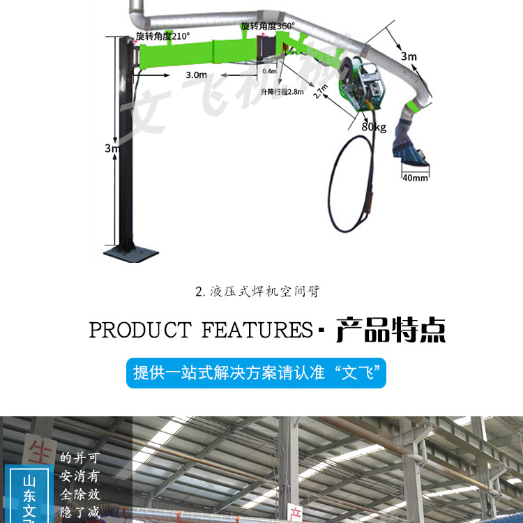 山东文飞机械设备有限公司,位于山东省泰安市高新技术开发区,公司具有独立法人资格。 公司通过市场调研考察,根据市场需求 我公司拥有全系列多型号的焊机空间臂产品,公司主导产品焊机空间臂被多家知名企业广泛使用,极大的提升了这些企业的现场管理水平和产品品质。公司在全国拥有多家代理商,并建立的长期合作关系,形成了完善有效的售前、售中及售后服务网络。公司一直秉承“质量立足,诚信优先”的理念,全力打造焊机空间臂品牌。始终坚持客户需求与公司利益相结合,把性能独特的产品以及质量更好的设备推荐于客户,应用于焊接领域,并用快捷、及时的售后服务赢得您的信赖。公司力求以人文的品质打造企业文化的精髓。